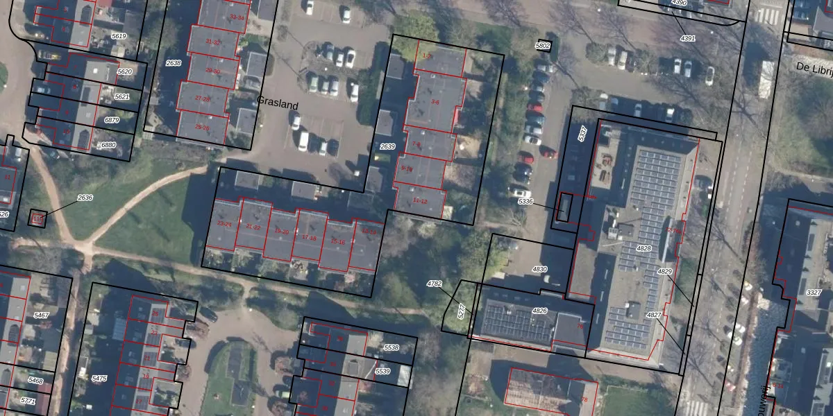 Grasland 12 is gelegen op kadastraal perceel LDN02E2639. Deze kadastrale aanduiding is uniek en wordt gebruikt door het Kadaster om eigendomsrechten en andere zakelijke rechten vast te leggen. Het perceel maakt onderdeel uit van de kadastrale gemeente Leusden.