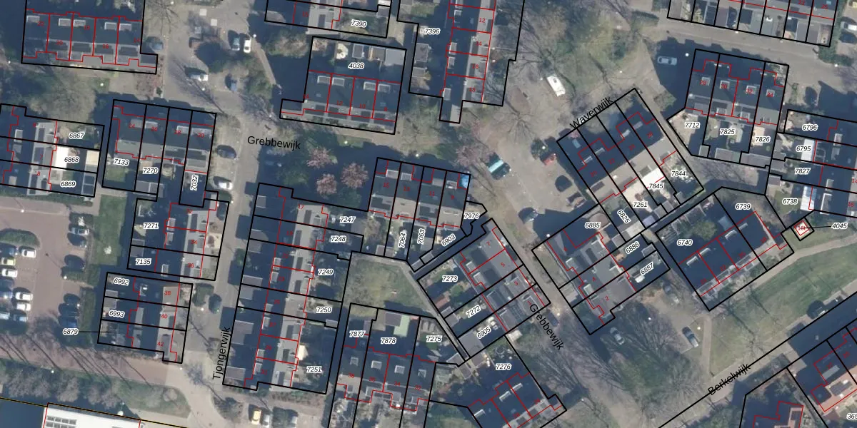 Gebruik de zoekbalk of klik op een perceel voor informatie over de adressen binnen dit perceel.