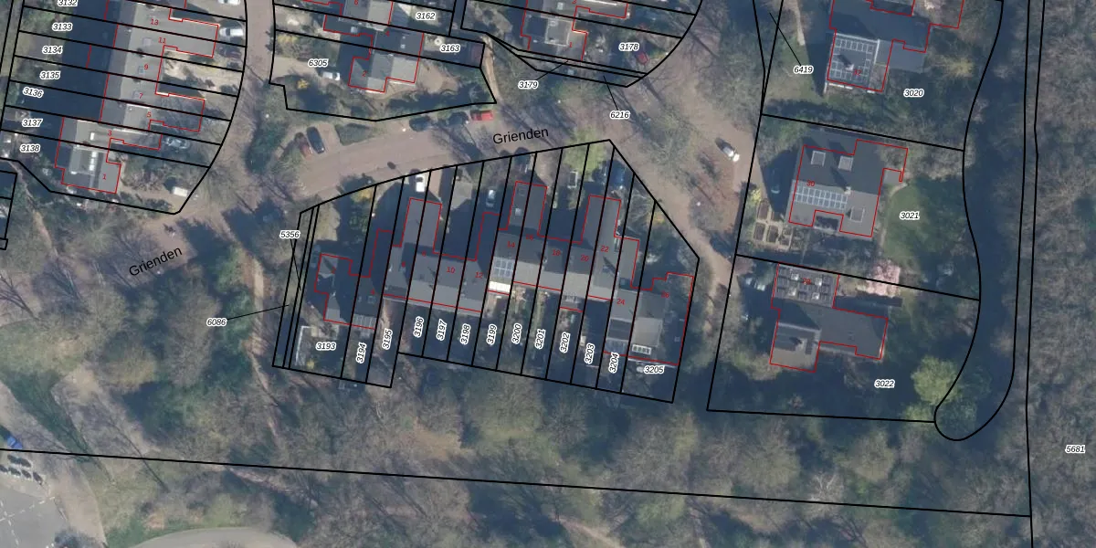 Het perceel waarop Grienden 18 staat heeft een oppervlakte van 199 m². Dit is een middelgroot perceel. De perceeloppervlakte wordt geregistreerd door het Kadaster. Gedetailleerde informatie over de maten van dit perceel kunt u vinden in het rapport Kadastrale kaart met maatvoering van Grienden 18.