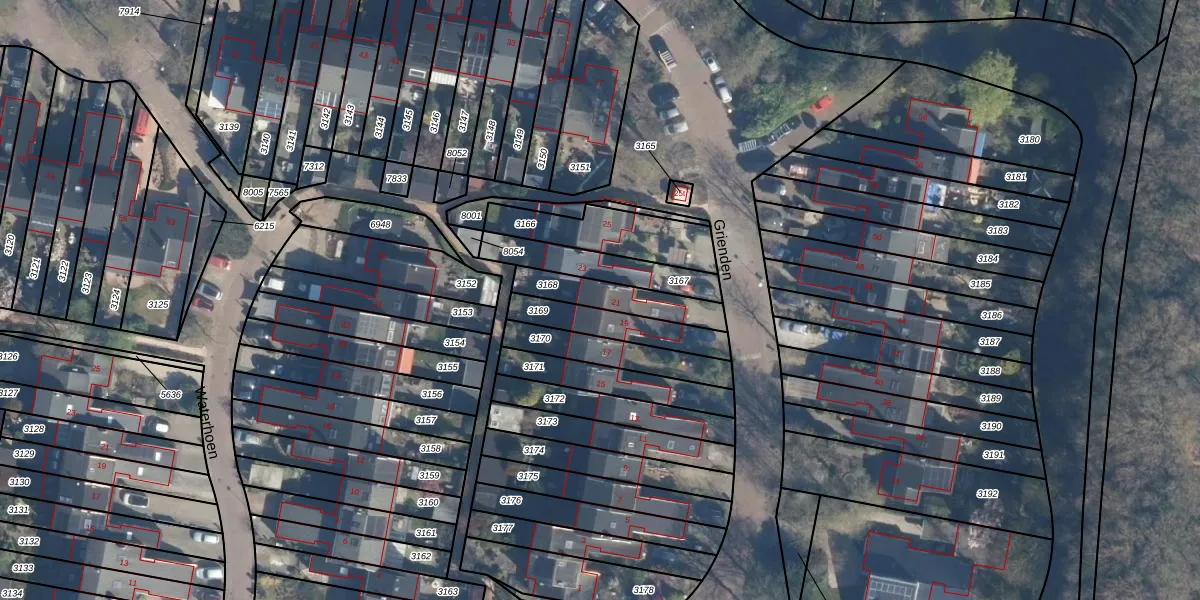 Grienden 21 is gelegen op kadastraal perceel LDN02F3168. Deze kadastrale aanduiding is uniek en wordt gebruikt door het Kadaster om eigendomsrechten en andere zakelijke rechten vast te leggen. Het perceel maakt onderdeel uit van de kadastrale gemeente Leusden.