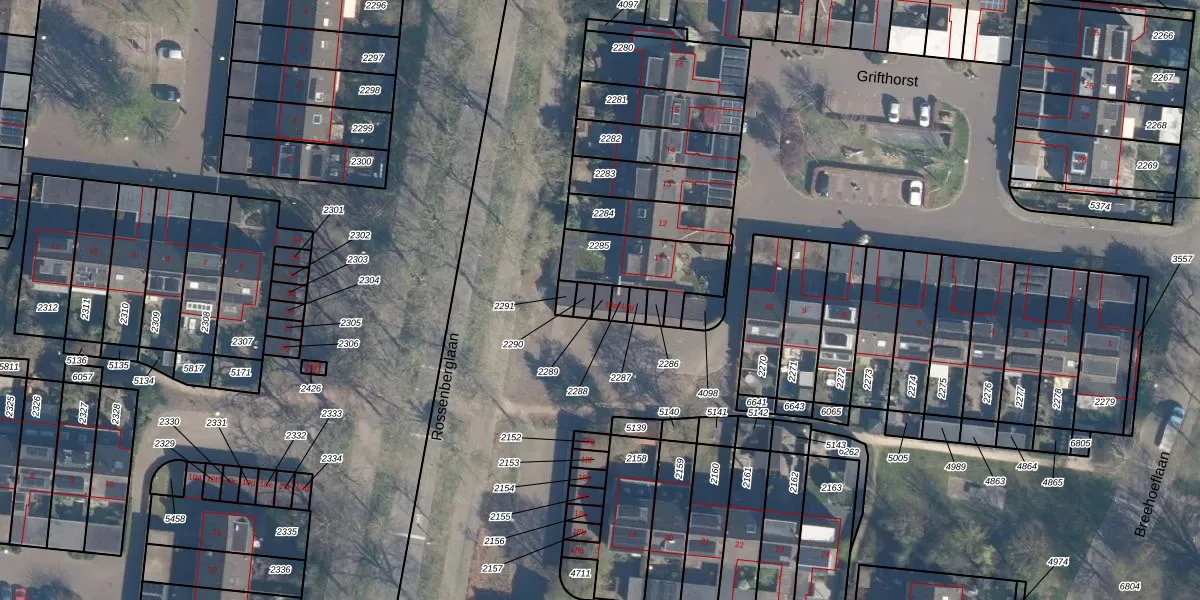 Gebruik de zoekbalk of klik op een perceel voor informatie over de adressen binnen dit perceel.