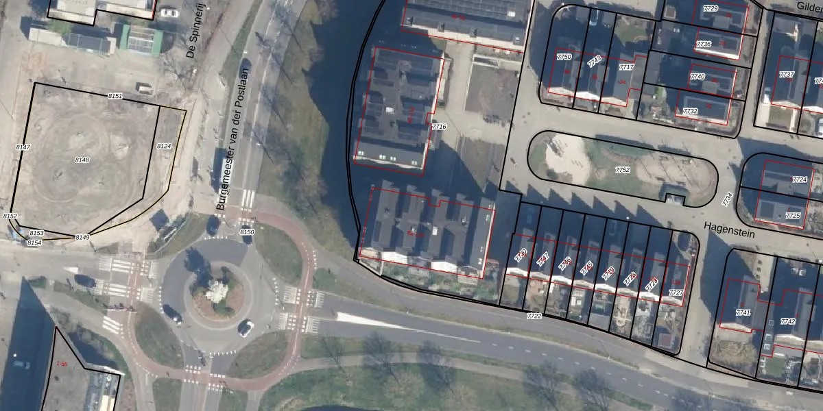 Het perceel waarop Hagenstein 90 staat heeft een oppervlakte van 2985 m². Dit is een zeer groot perceel. De perceeloppervlakte wordt geregistreerd door het Kadaster. Gedetailleerde informatie over de maten van dit perceel kunt u vinden in het rapport Kadastrale kaart met maatvoering van Hagenstein 90.