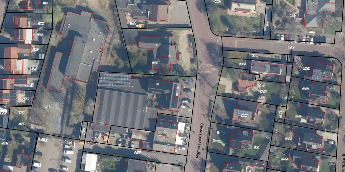 Hamersveldseweg 22 is gelegen op kadastraal perceel LDN02E2593. Deze kadastrale aanduiding is uniek en wordt gebruikt door het Kadaster om eigendomsrechten en andere zakelijke rechten vast te leggen. Het perceel maakt onderdeel uit van de kadastrale gemeente Leusden.