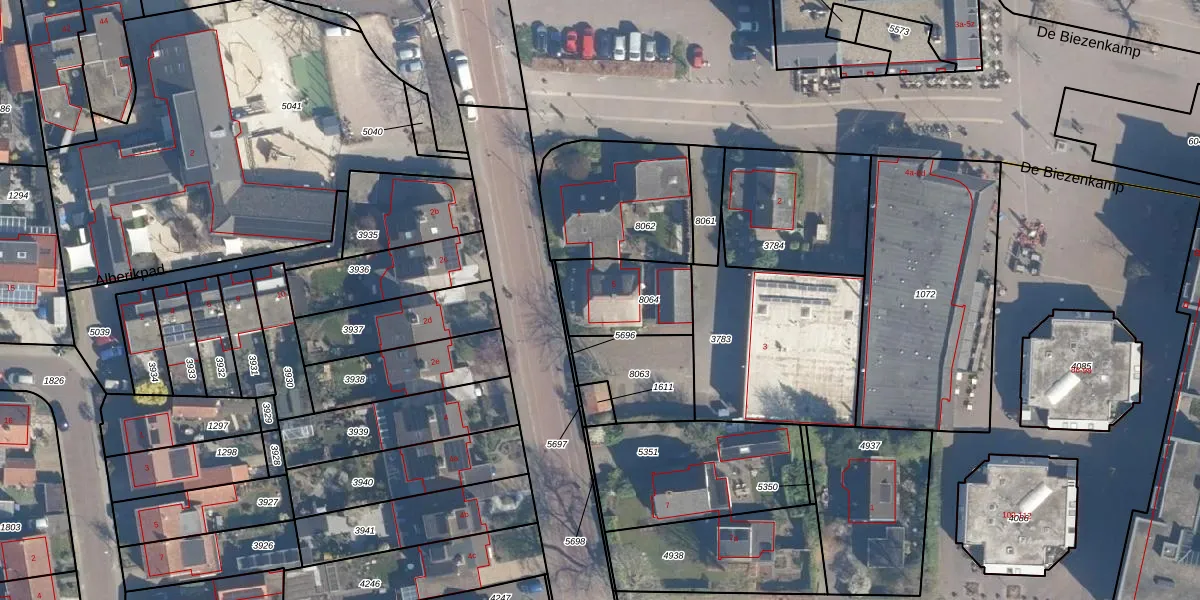 Gebruik de zoekbalk of klik op een perceel voor informatie over de adressen binnen dit perceel.