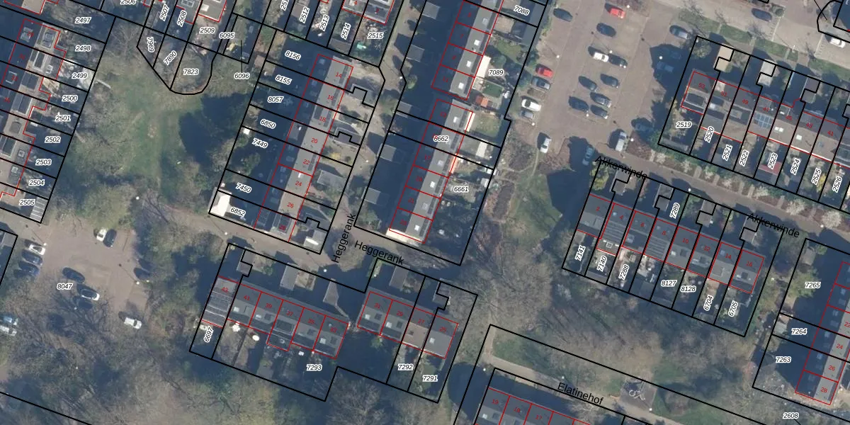 Het perceel waarop Heggerank 21 staat heeft een oppervlakte van 630 m². Dit is een groot perceel. De perceeloppervlakte wordt geregistreerd door het Kadaster. Gedetailleerde informatie over de maten van dit perceel kunt u vinden in het rapport Kadastrale kaart met maatvoering van Heggerank 21.