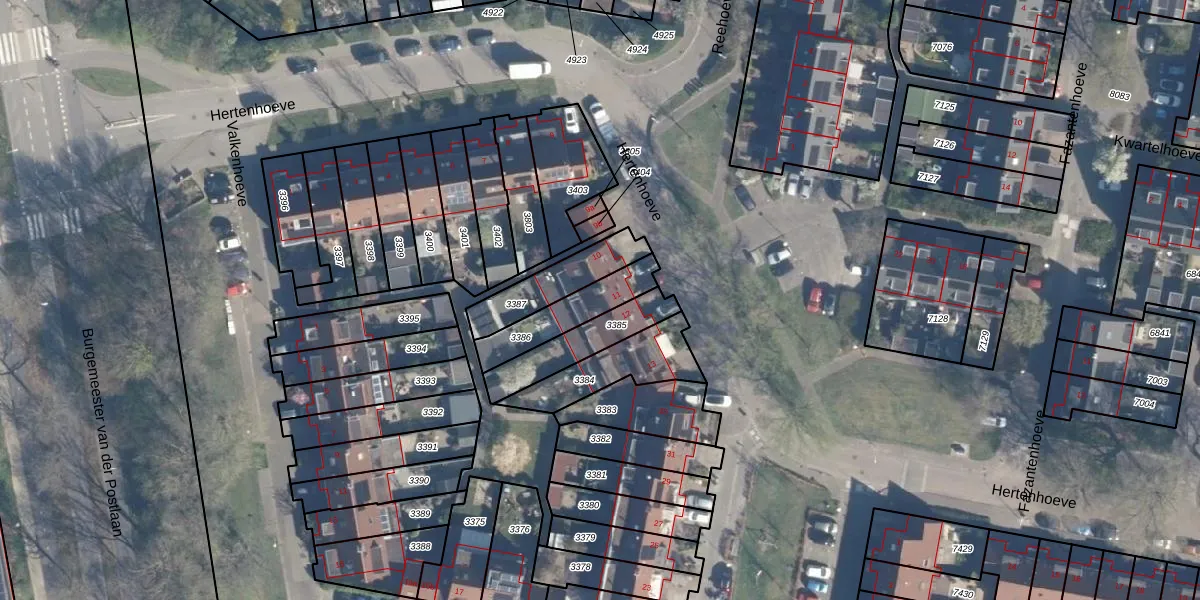 Gebruik de zoekbalk of klik op een perceel voor informatie over de adressen binnen dit perceel.