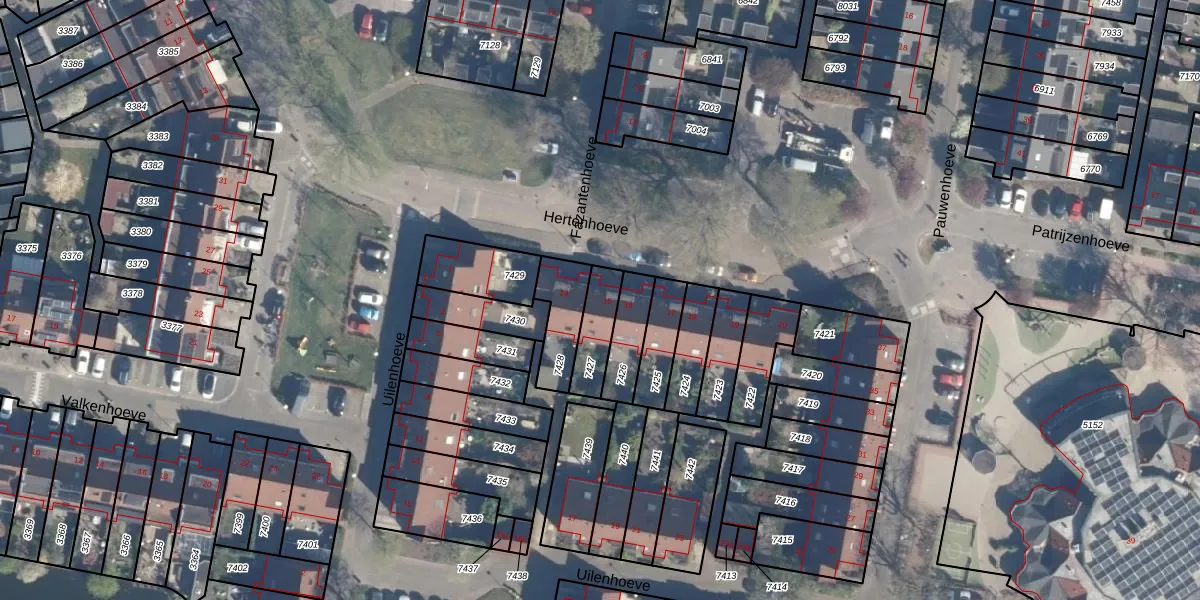 Gebruik de zoekbalk of klik op een perceel voor informatie over de adressen binnen dit perceel.