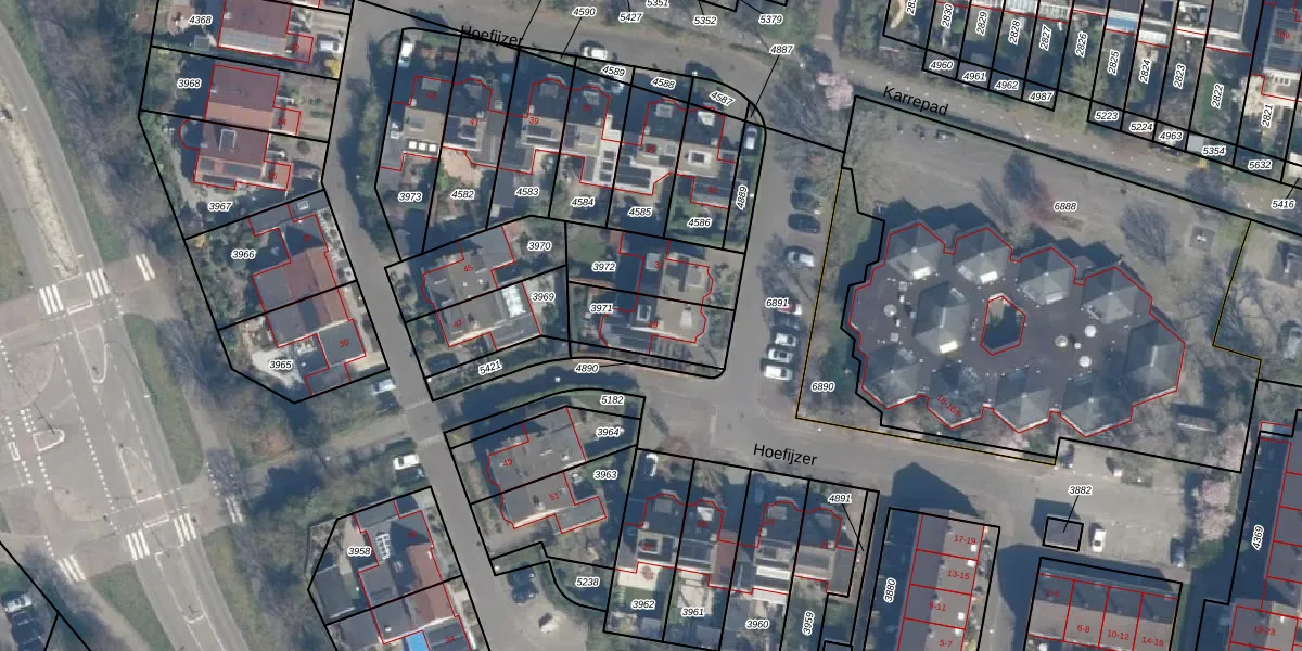 Gebruik de zoekbalk of klik op een perceel voor informatie over de adressen binnen dit perceel.