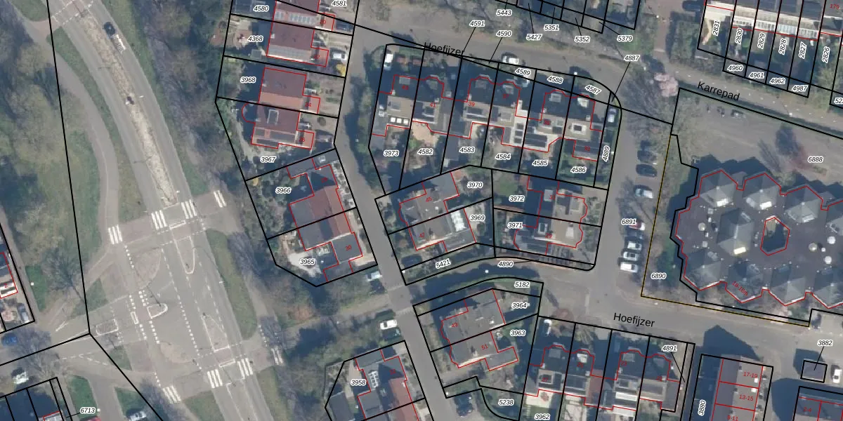 Gebruik de zoekbalk of klik op een perceel voor informatie over de adressen binnen dit perceel.