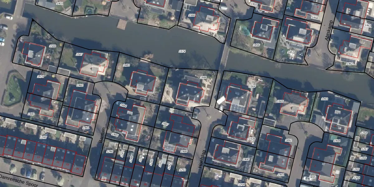 Gebruik de zoekbalk of klik op een perceel voor informatie over de adressen binnen dit perceel.
