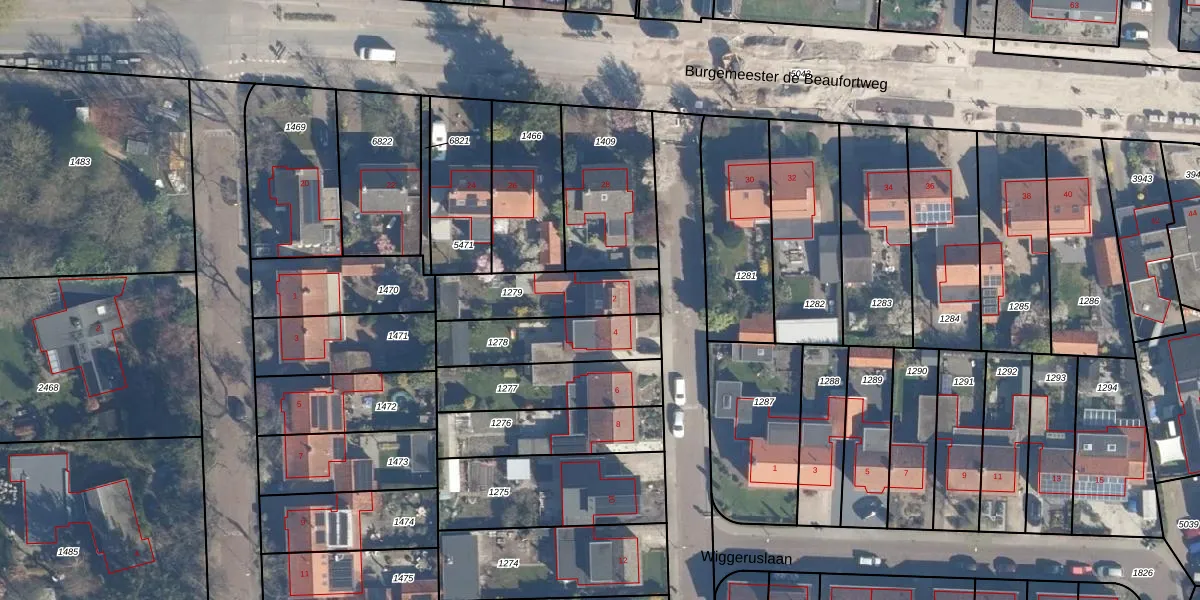 Gebruik de zoekbalk of klik op een perceel voor informatie over de adressen binnen dit perceel.