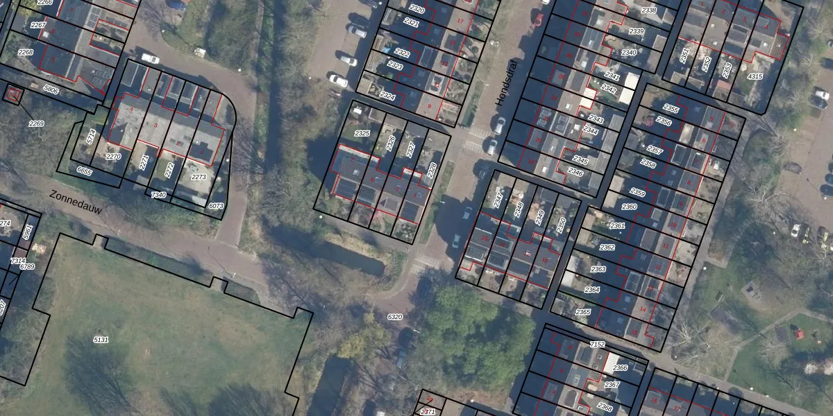 Gebruik de zoekbalk of klik op een perceel voor informatie over de adressen binnen dit perceel.