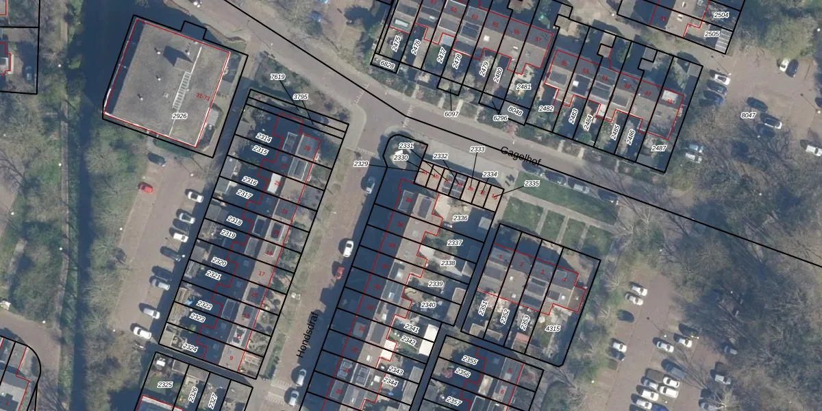 Het perceel waarop Hondsdraf 38 staat heeft een oppervlakte van 303 m². Dit is een groot perceel. De perceeloppervlakte wordt geregistreerd door het Kadaster. Gedetailleerde informatie over de maten van dit perceel kunt u vinden in het rapport Kadastrale kaart met maatvoering van Hondsdraf 38.