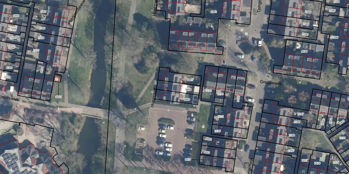 Gebruik de zoekbalk of klik op een perceel voor informatie over de adressen binnen dit perceel.
