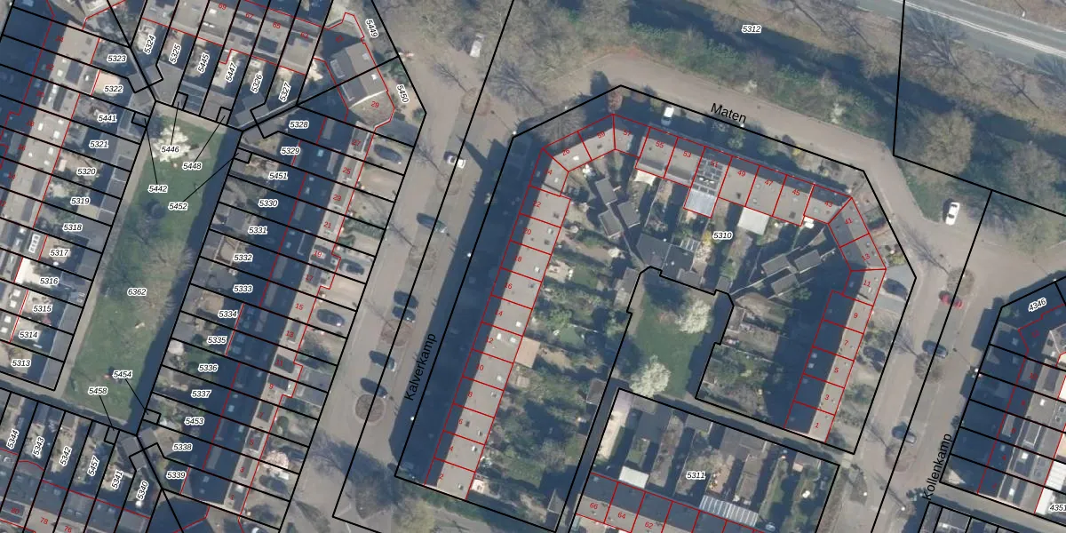 Het perceel waarop Kalverkamp 18 staat heeft een oppervlakte van 4490 m². Dit is een zeer groot perceel. De perceeloppervlakte wordt geregistreerd door het Kadaster. Gedetailleerde informatie over de maten van dit perceel kunt u vinden in het rapport Kadastrale kaart met maatvoering van Kalverkamp 18.
