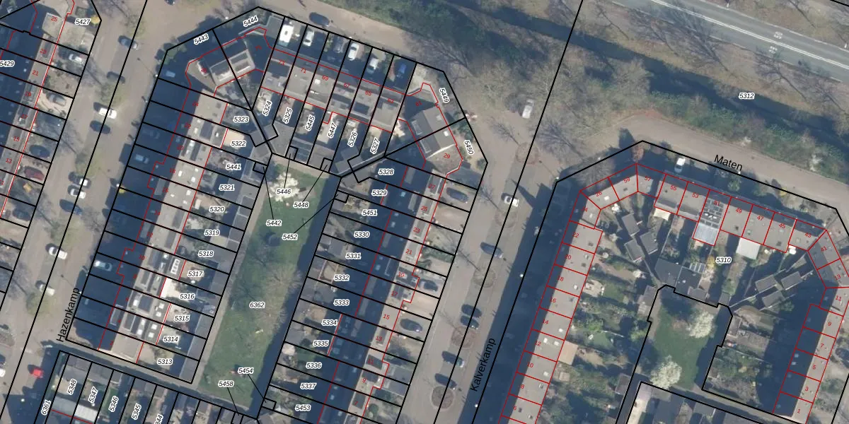 Het perceel waarop Kalverkamp 25 staat heeft een oppervlakte van 163 m². Dit is een middelgroot perceel. De perceeloppervlakte wordt geregistreerd door het Kadaster. Gedetailleerde informatie over de maten van dit perceel kunt u vinden in het rapport Kadastrale kaart met maatvoering van Kalverkamp 25.