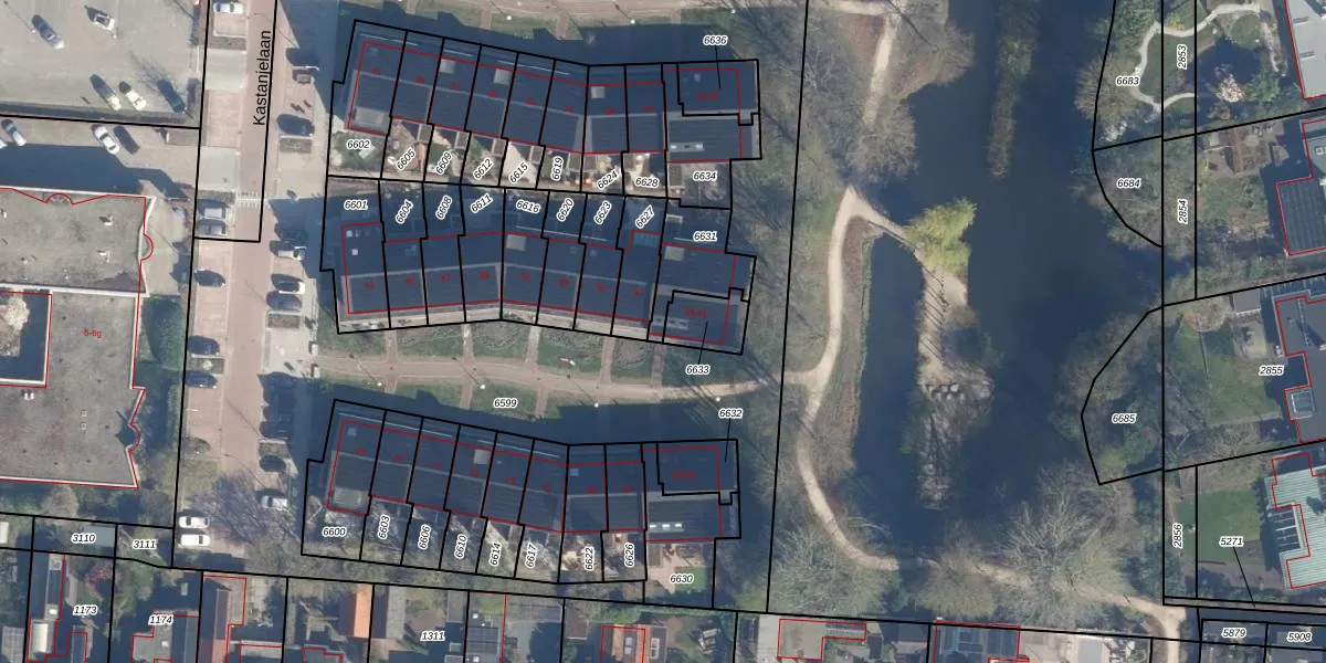 Kastanjelaan 61 is gelegen op kadastraal perceel LDN02E6631. Deze kadastrale aanduiding is uniek en wordt gebruikt door het Kadaster om eigendomsrechten en andere zakelijke rechten vast te leggen. Het perceel maakt onderdeel uit van de kadastrale gemeente Leusden.