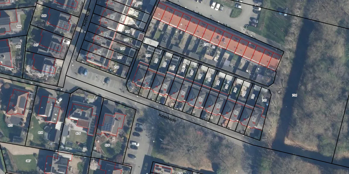 Het perceel waarop Keerkade 37 staat heeft een oppervlakte van 160 m². Dit is een middelgroot perceel. De perceeloppervlakte wordt geregistreerd door het Kadaster. Gedetailleerde informatie over de maten van dit perceel kunt u vinden in het rapport Kadastrale kaart met maatvoering van Keerkade 37.