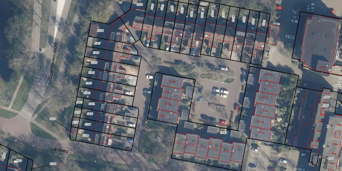 Het perceel waarop Klaverland 59 staat heeft een oppervlakte van 2785 m². Dit is een zeer groot perceel. De perceeloppervlakte wordt geregistreerd door het Kadaster. Gedetailleerde informatie over de maten van dit perceel kunt u vinden in het rapport Kadastrale kaart met maatvoering van Klaverland 59.