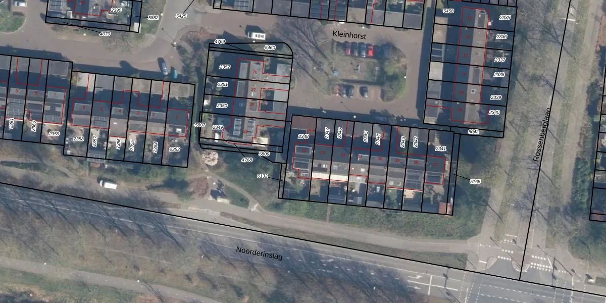Kleinhorst 24 is gelegen op kadastraal perceel LDN02E2348. Deze kadastrale aanduiding is uniek en wordt gebruikt door het Kadaster om eigendomsrechten en andere zakelijke rechten vast te leggen. Het perceel maakt onderdeel uit van de kadastrale gemeente Leusden.