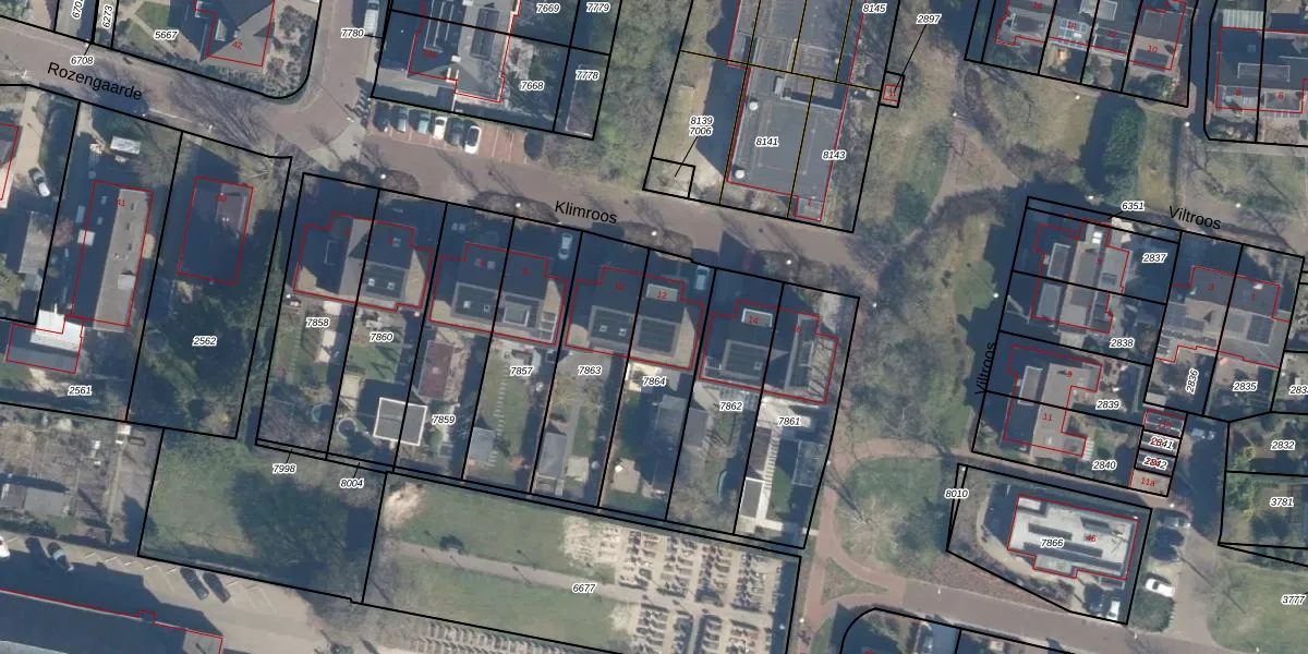 Klimroos 12 is gelegen op kadastraal perceel LDN02F7864. Deze kadastrale aanduiding is uniek en wordt gebruikt door het Kadaster om eigendomsrechten en andere zakelijke rechten vast te leggen. Het perceel maakt onderdeel uit van de kadastrale gemeente Leusden.