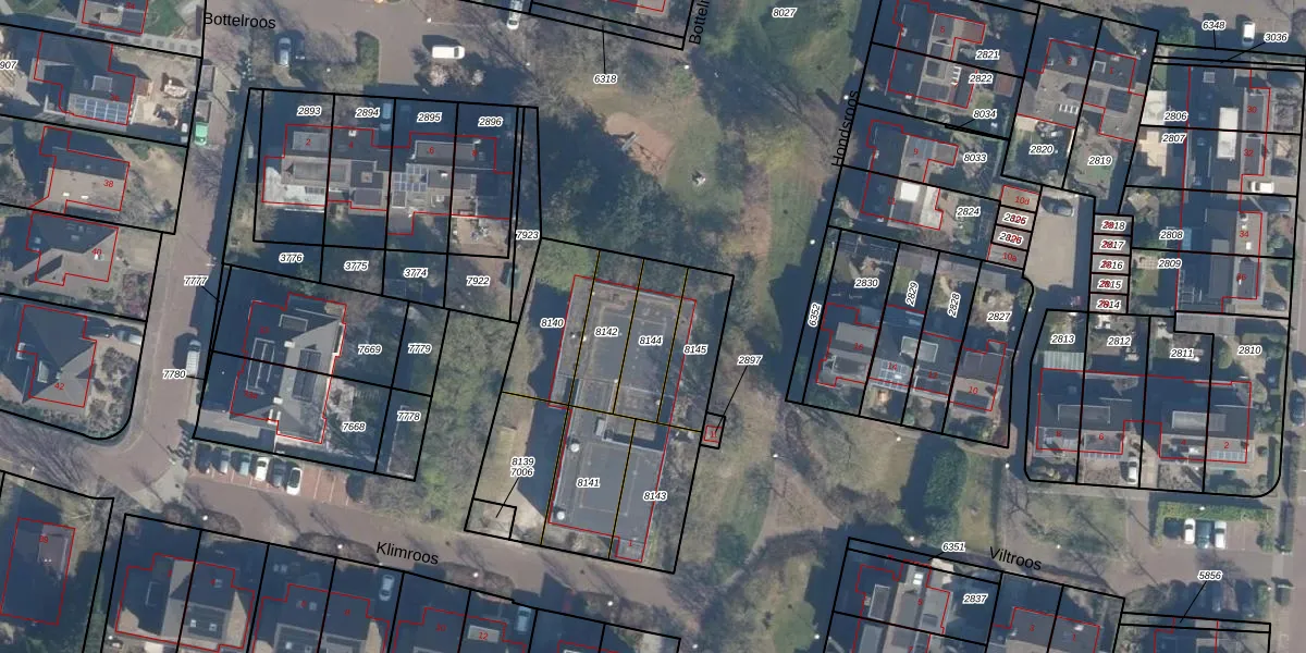 Het perceel waarop Klimroos 7 staat heeft een oppervlakte van 169 m². Dit is een middelgroot perceel. De perceeloppervlakte wordt geregistreerd door het Kadaster. Gedetailleerde informatie over de maten van dit perceel kunt u vinden in het rapport Kadastrale kaart met maatvoering van Klimroos 7.