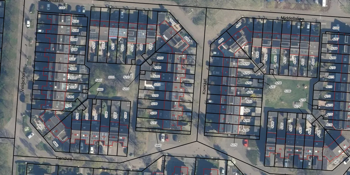 Gebruik de zoekbalk of klik op een perceel voor informatie over de adressen binnen dit perceel.