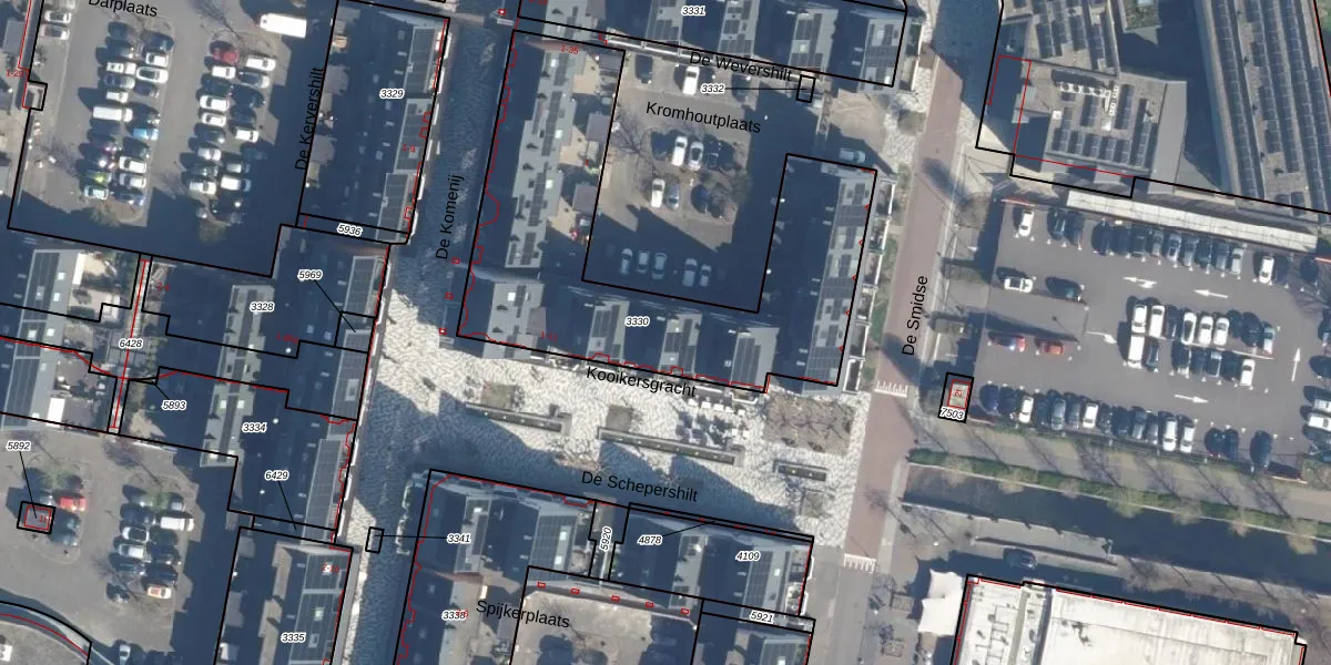 Het perceel waarop Kooikersgracht 3-b staat heeft een oppervlakte van 1596 m². Dit is een zeer groot perceel. De perceeloppervlakte wordt geregistreerd door het Kadaster. Gedetailleerde informatie over de maten van dit perceel kunt u vinden in het rapport Kadastrale kaart met maatvoering van Kooikersgracht 3-b.