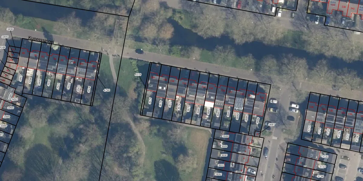 Gebruik de zoekbalk of klik op een perceel voor informatie over de adressen binnen dit perceel.