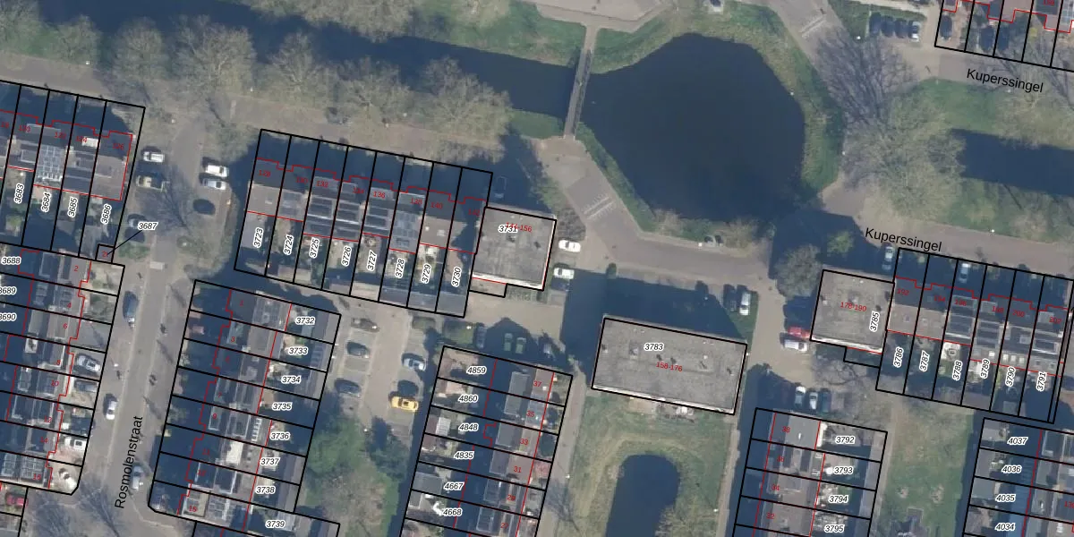 Het perceel waarop Kuperssingel 148 staat heeft een oppervlakte van 197 m². Dit is een middelgroot perceel. De perceeloppervlakte wordt geregistreerd door het Kadaster. Gedetailleerde informatie over de maten van dit perceel kunt u vinden in het rapport Kadastrale kaart met maatvoering van Kuperssingel 148.