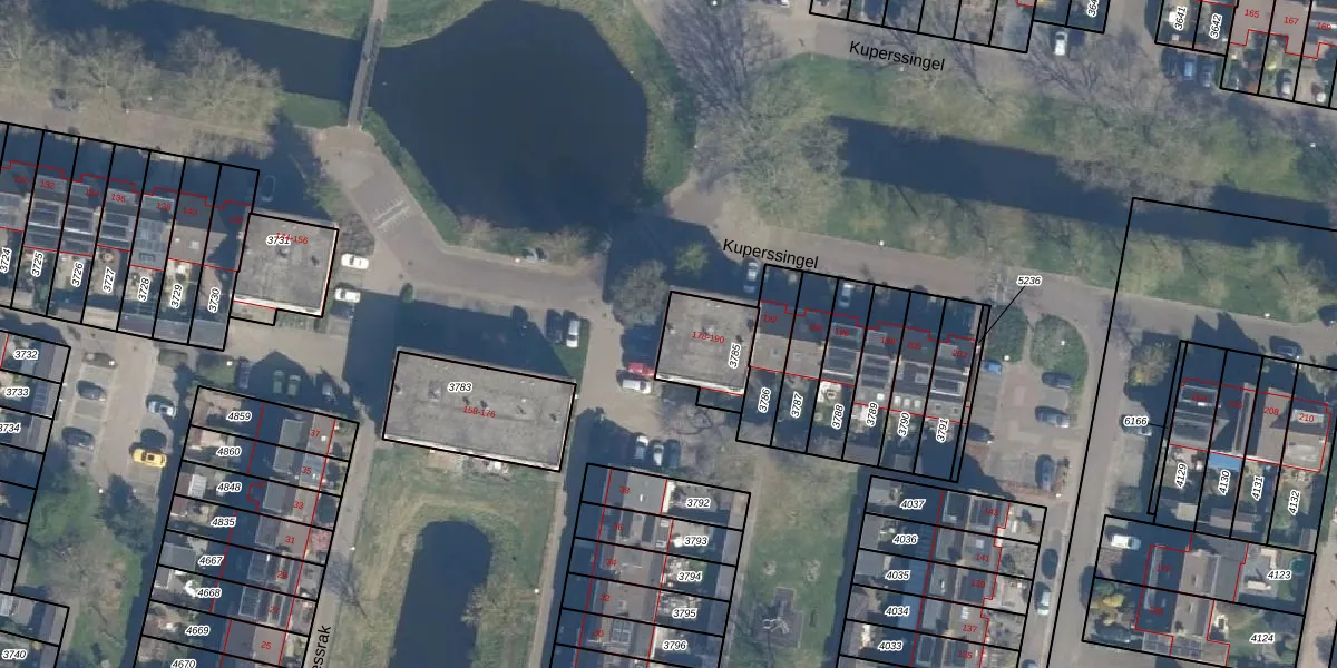 Het perceel waarop Kuperssingel 186 staat heeft een oppervlakte van 198 m². Dit is een middelgroot perceel. De perceeloppervlakte wordt geregistreerd door het Kadaster. Gedetailleerde informatie over de maten van dit perceel kunt u vinden in het rapport Kadastrale kaart met maatvoering van Kuperssingel 186.