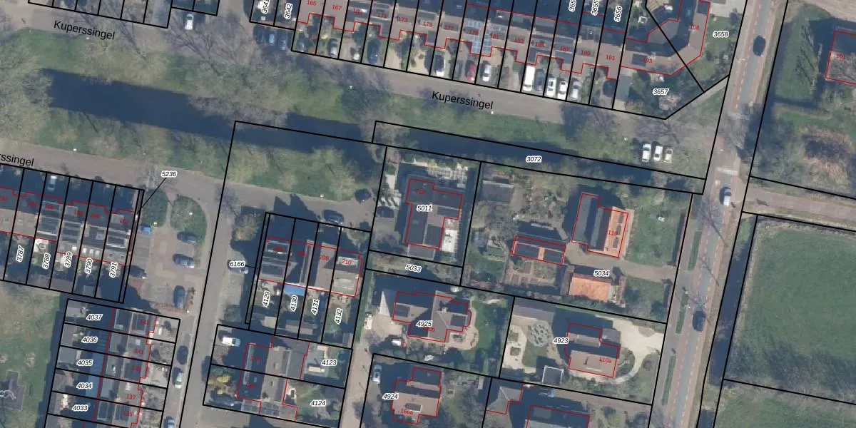 Het perceel waarop Kuperssingel 212 staat heeft een oppervlakte van 555 m². Dit is een groot perceel. De perceeloppervlakte wordt geregistreerd door het Kadaster. Gedetailleerde informatie over de maten van dit perceel kunt u vinden in het rapport Kadastrale kaart met maatvoering van Kuperssingel 212.