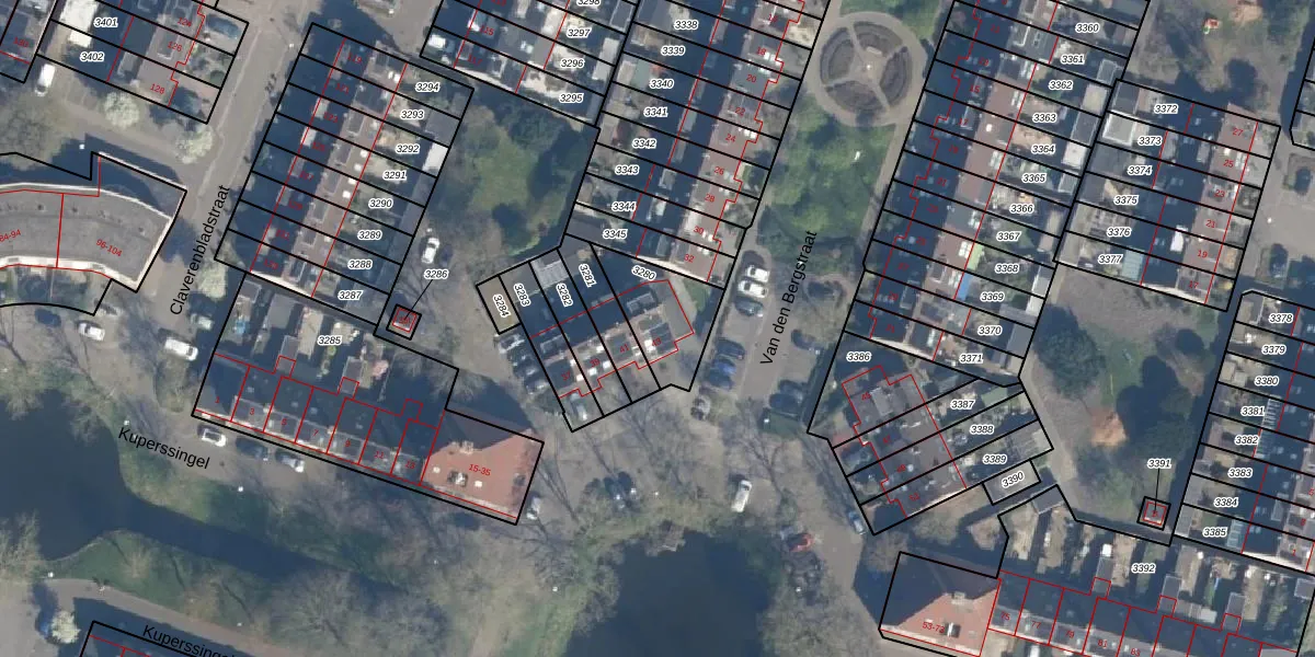 Gebruik de zoekbalk of klik op een perceel voor informatie over de adressen binnen dit perceel.