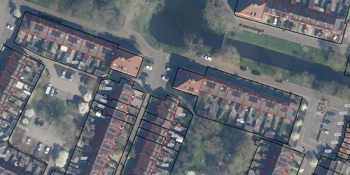 Het perceel waarop Kuperssingel 58 staat heeft een oppervlakte van 1792 m². Dit is een zeer groot perceel. De perceeloppervlakte wordt geregistreerd door het Kadaster. Gedetailleerde informatie over de maten van dit perceel kunt u vinden in het rapport Kadastrale kaart met maatvoering van Kuperssingel 58.