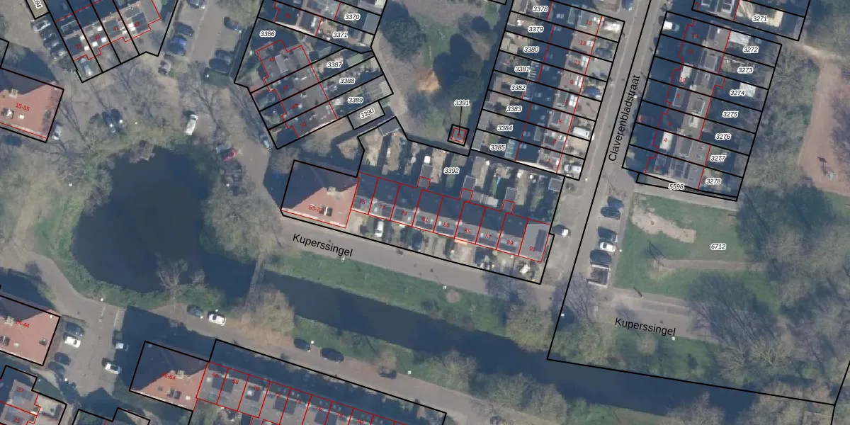 Het perceel waarop Kuperssingel 81 staat heeft een oppervlakte van 1445 m². Dit is een zeer groot perceel. De perceeloppervlakte wordt geregistreerd door het Kadaster. Gedetailleerde informatie over de maten van dit perceel kunt u vinden in het rapport Kadastrale kaart met maatvoering van Kuperssingel 81.