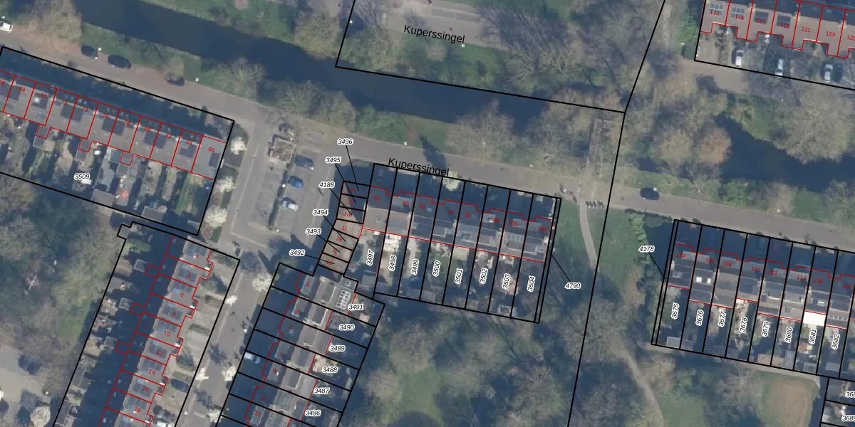 Gebruik de zoekbalk of klik op een perceel voor informatie over de adressen binnen dit perceel.
