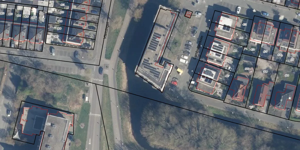 Het perceel waarop Lambalgerkom 37 staat heeft een oppervlakte van 775 m². Dit is een groot perceel. De perceeloppervlakte wordt geregistreerd door het Kadaster. Gedetailleerde informatie over de maten van dit perceel kunt u vinden in het rapport Kadastrale kaart met maatvoering van Lambalgerkom 37.