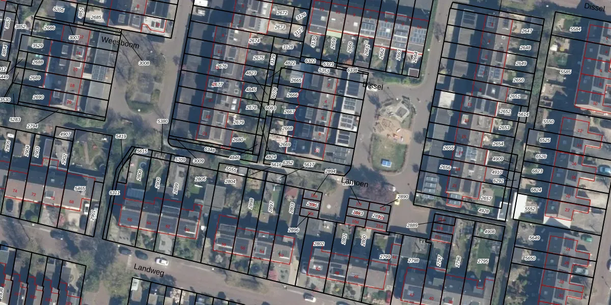 Het adres is gelegen op perceel 2669 in de sectie E en de kadastrale gemeente Leusden. De kadastrale aanduiding is aldus LDN02-E-2669. Het perceel is 161 m² groot. Dat is kleiner dan de gemiddelde perceeloppervlakte in Leusden, dat op 3490,73 m² ligt. Het grootste perceel in de kadastrale gemeente is 8,56 km². Het kleinste perceel heeft een oppervlakte van 0 m². Er zijn geen andere adressen aanwezig op het perceel. In de Basisregistratie Kadaster (BRK) werden de grenzen van het perceel geregistreerd op 01-12-2020.