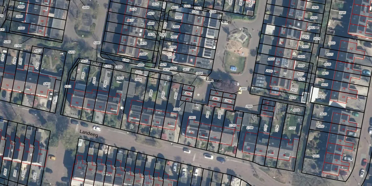 Gebruik de zoekbalk of klik op een perceel voor informatie over de adressen binnen dit perceel.