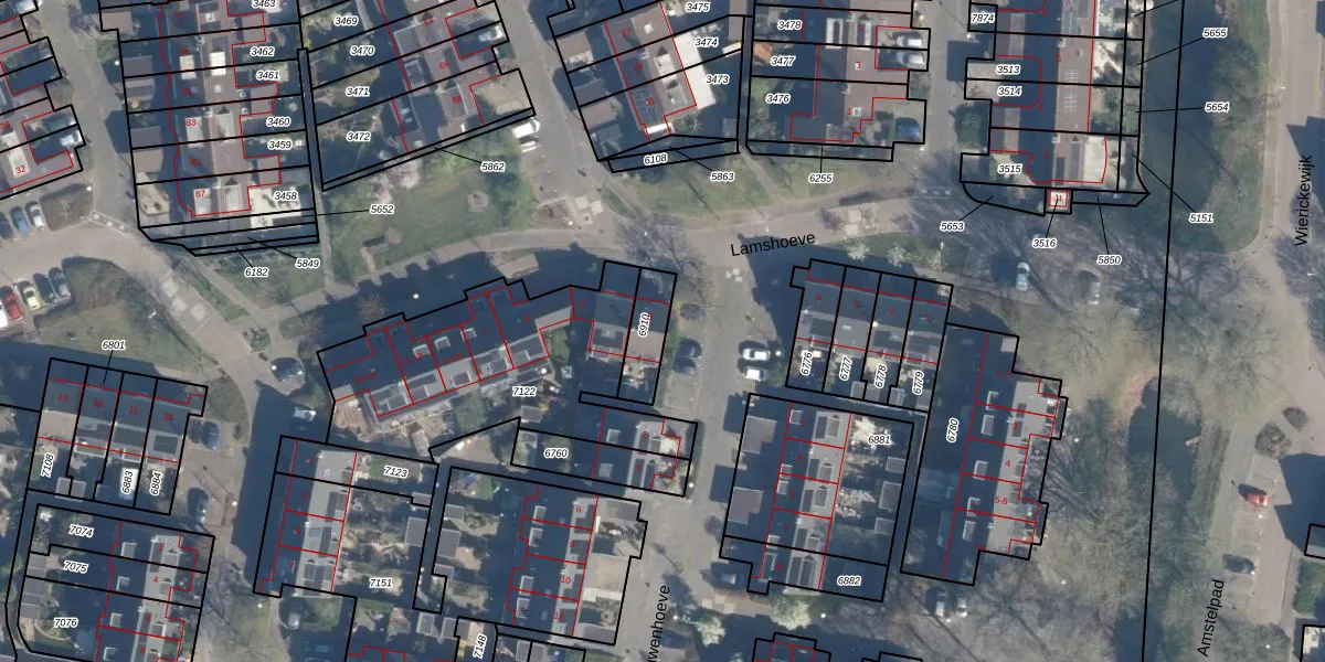 Het perceel waarop Lamshoeve 5 staat heeft een oppervlakte van 110 m². Dit is een middelgroot perceel. De perceeloppervlakte wordt geregistreerd door het Kadaster. Gedetailleerde informatie over de maten van dit perceel kunt u vinden in het rapport Kadastrale kaart met maatvoering van Lamshoeve 5.