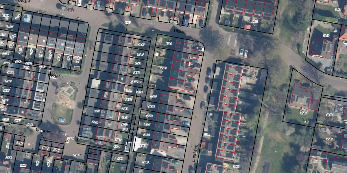 Landweg 10 is gelegen op kadastraal perceel LDN02E5585. Deze kadastrale aanduiding is uniek en wordt gebruikt door het Kadaster om eigendomsrechten en andere zakelijke rechten vast te leggen. Het perceel maakt onderdeel uit van de kadastrale gemeente Leusden.