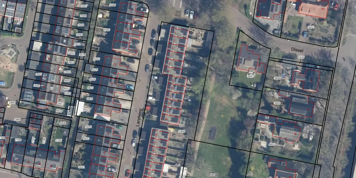 Het perceel waarop Landweg 15 staat heeft een oppervlakte van 3108 m². Dit is een zeer groot perceel. De perceeloppervlakte wordt geregistreerd door het Kadaster. Gedetailleerde informatie over de maten van dit perceel kunt u vinden in het rapport Kadastrale kaart met maatvoering van Landweg 15.
