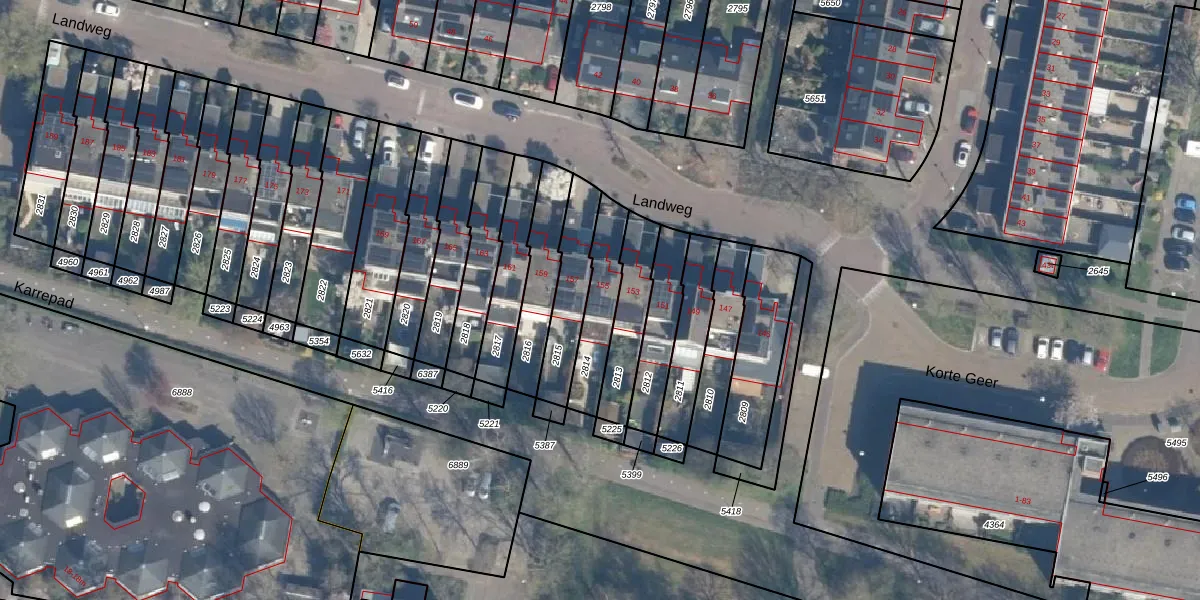 Gebruik de zoekbalk of klik op een perceel voor informatie over de adressen binnen dit perceel.