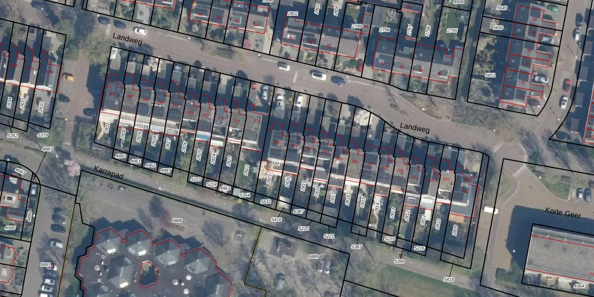 Het perceel waarop Landweg 167 staat heeft een oppervlakte van 195 m². Dit is een middelgroot perceel. De perceeloppervlakte wordt geregistreerd door het Kadaster. Gedetailleerde informatie over de maten van dit perceel kunt u vinden in het rapport Kadastrale kaart met maatvoering van Landweg 167.