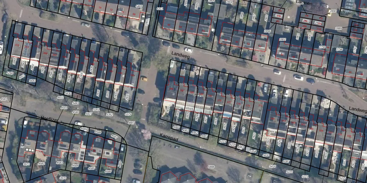 Gebruik de zoekbalk of klik op een perceel voor informatie over de adressen binnen dit perceel.