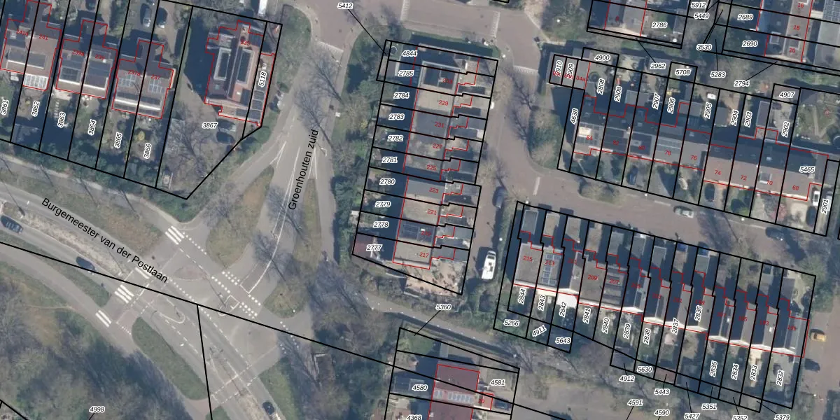 Gebruik de zoekbalk of klik op een perceel voor informatie over de adressen binnen dit perceel.