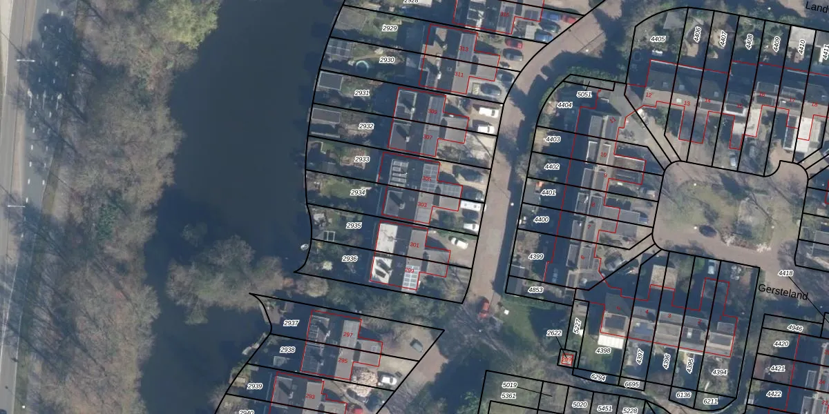 Gebruik de zoekbalk of klik op een perceel voor informatie over de adressen binnen dit perceel.