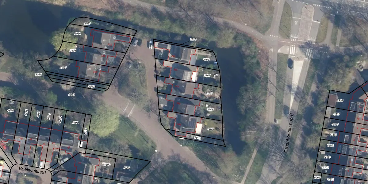 Gebruik de zoekbalk of klik op een perceel voor informatie over de adressen binnen dit perceel.