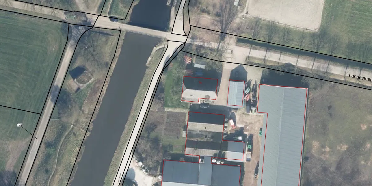 Het perceel waarop Langesteeg 2-a staat heeft een oppervlakte van 3,4 ha. Dit is een zeer groot perceel. De perceeloppervlakte wordt geregistreerd door het Kadaster. Gedetailleerde informatie over de maten van dit perceel kunt u vinden in het rapport Kadastrale kaart met maatvoering van Langesteeg 2-a.