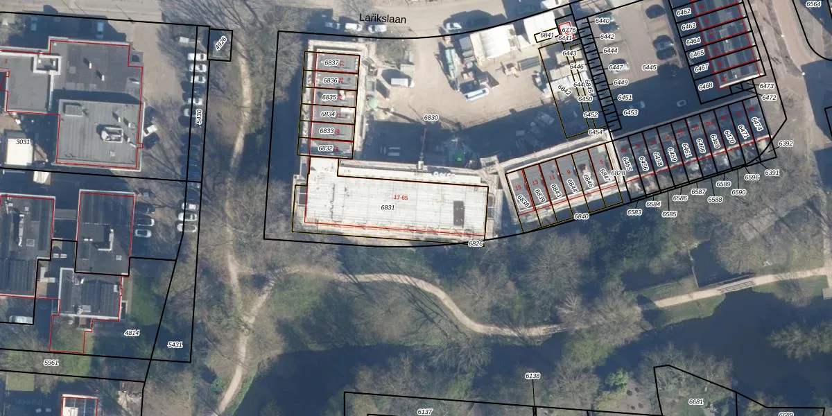 Larikslaan 47 is gelegen op kadastraal perceel LDN02E6831. Deze kadastrale aanduiding is uniek en wordt gebruikt door het Kadaster om eigendomsrechten en andere zakelijke rechten vast te leggen. Het perceel maakt onderdeel uit van de kadastrale gemeente Leusden.